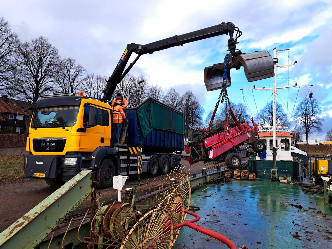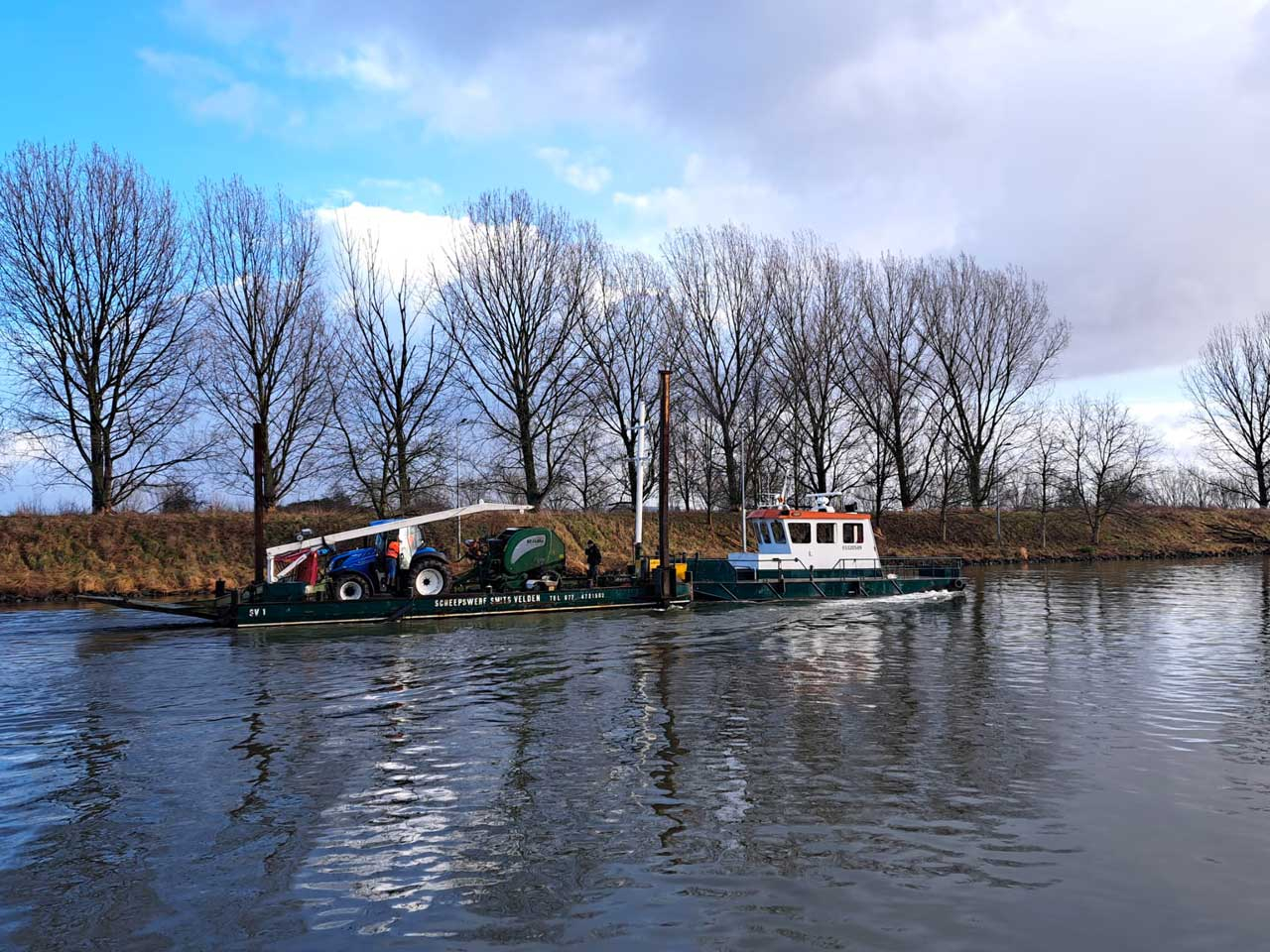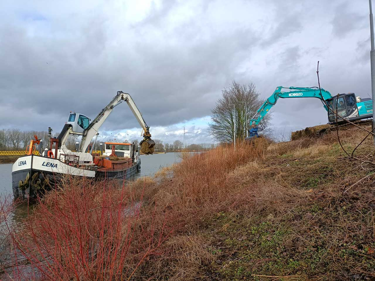 Op maandag 29 januari 2024 brachten we al voor dag en dauw allerlei materiaal naar een onderhoudsproject aan de Maas in Roermond. Dit gebeurde met bijna militaire precisie en leverde prachtige beelden op.